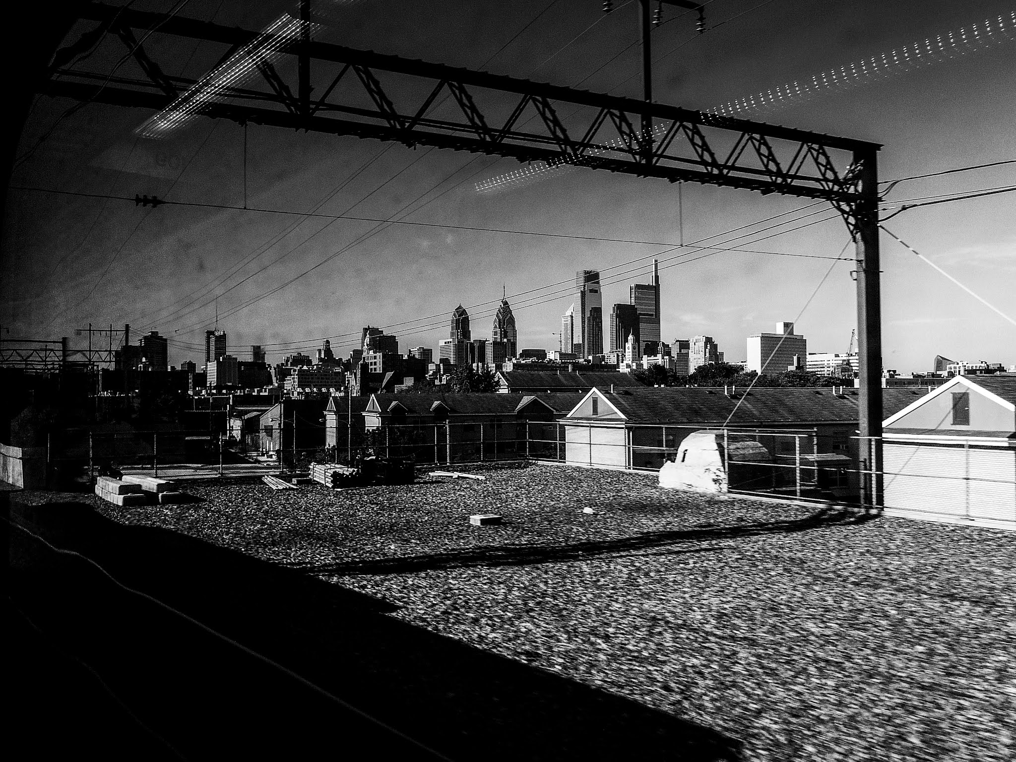 Today technology is built into today's simple everyday items and nothing has had a more personal effect on my photography as the LED lightbulb. Streets at night are now overly bright like a movie set with these menaces that don't have the warm temperature of past street lights. Their blue light not only wreaks havoc on plant life, animals and humans but also on photography. You just can't escape them anymore. Philadelphia has been in the process of installing them in every train station, concourse tunnel and on the trains themselves. It's those on the train that have put the kibosh on a side project of taking out the train window as I venture into center city. Before the reflection of lights on the windows showed up a long streaks of light and gave the illusion of movement and speed. The LEDS on the other hand give the impression of photographing out an office window.