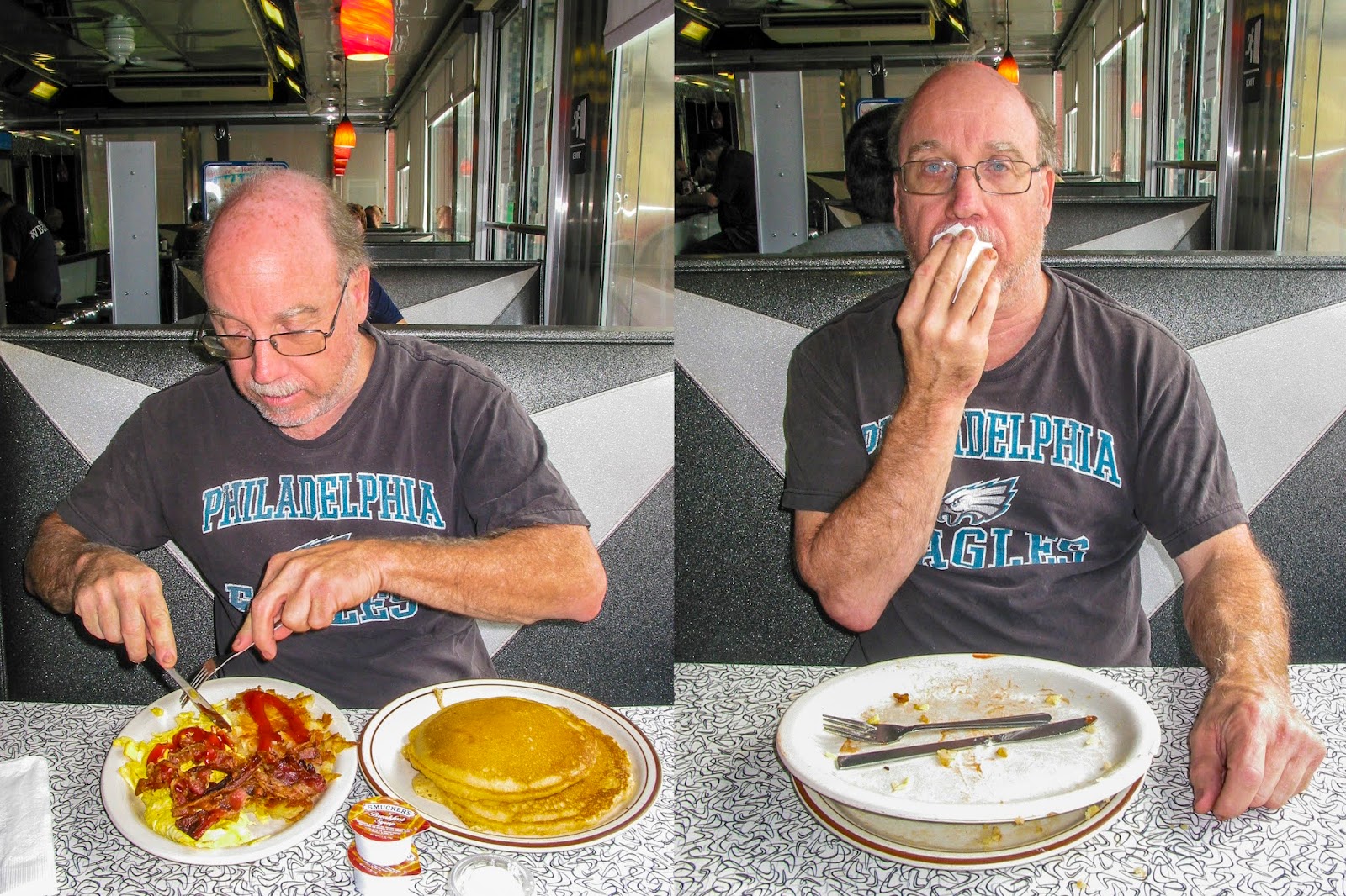 This week I finished a two year long project taking diptych photos of my friend Matt eating his breakfast at a diner. I've known Matt for 40 years now and I would like to thank him for being such a good sport with me firing off a flash in his face while he was eating. This wasn't the easiest project considering places like this kept closing during the pandemic.